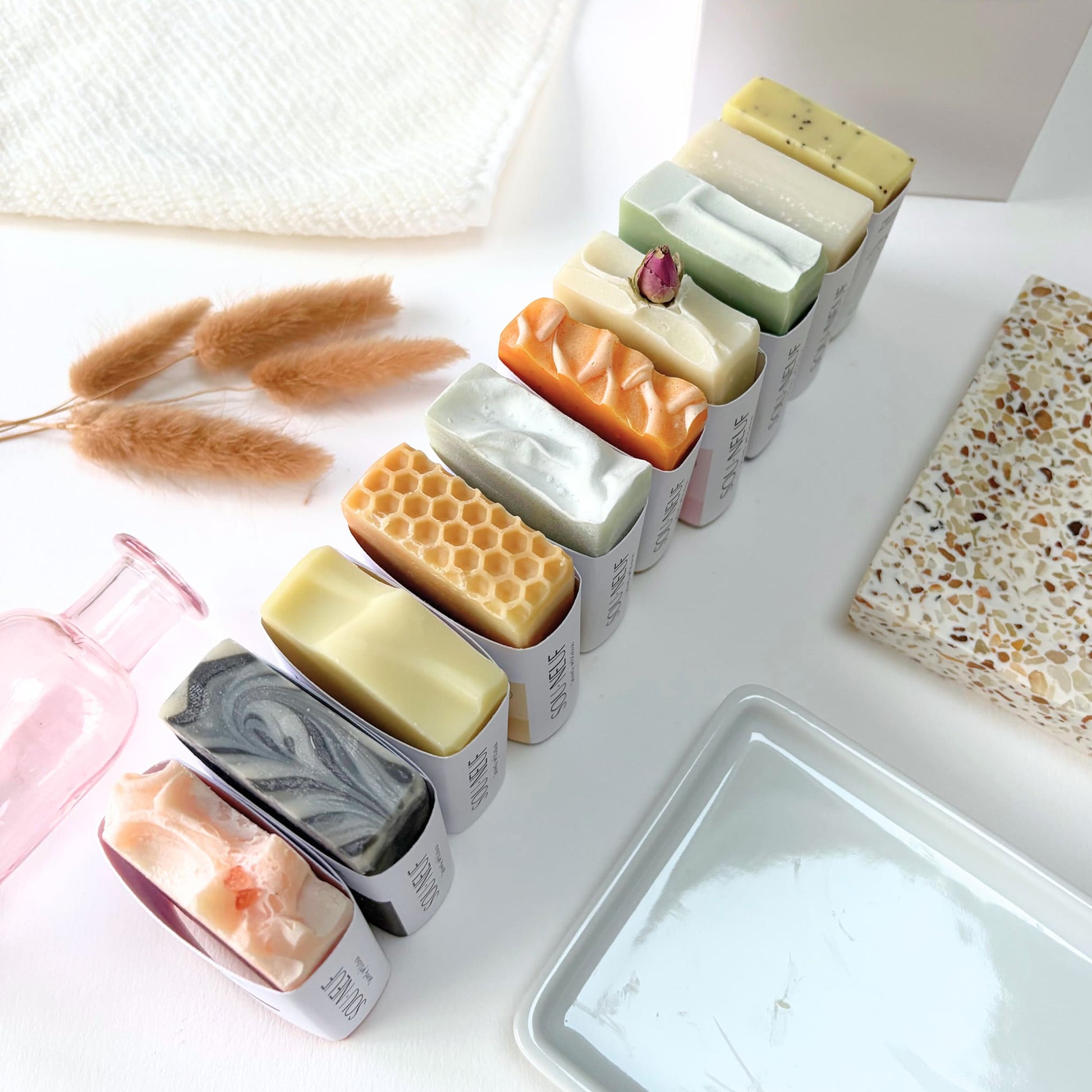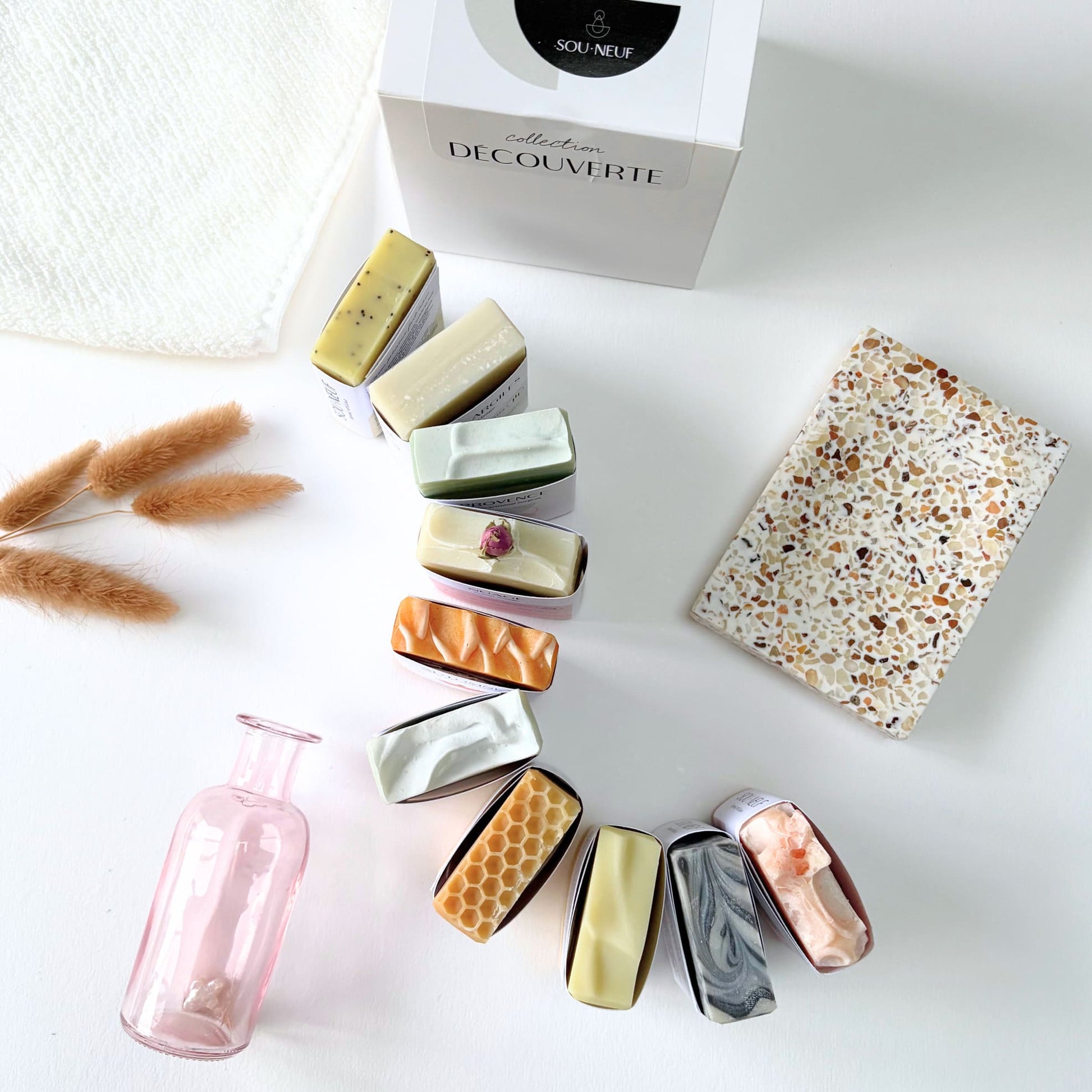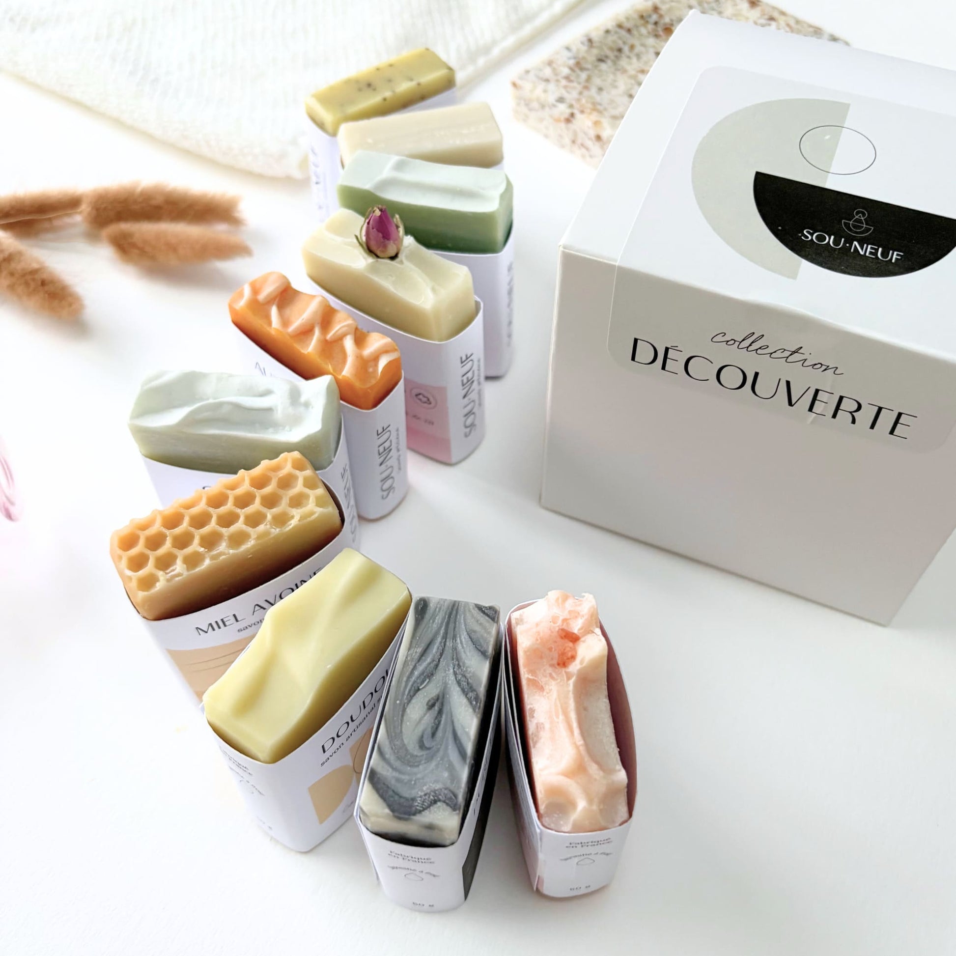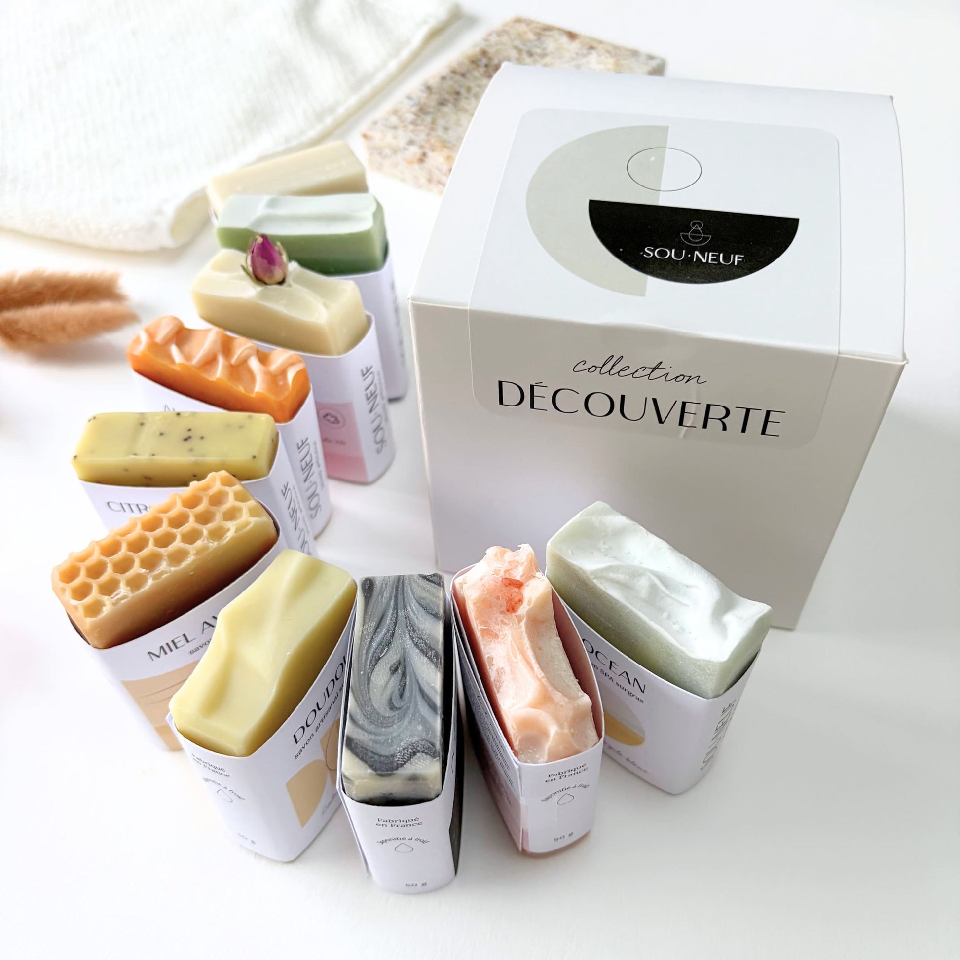 La collection Découverte réunit les 10 savons de la gamme, en format 50 g : un assortiment complet pour découvrir (ou offrir) l’ensemble de la gamme, du plus doux au plus minéral, du plus fleuri au plus apaisant.