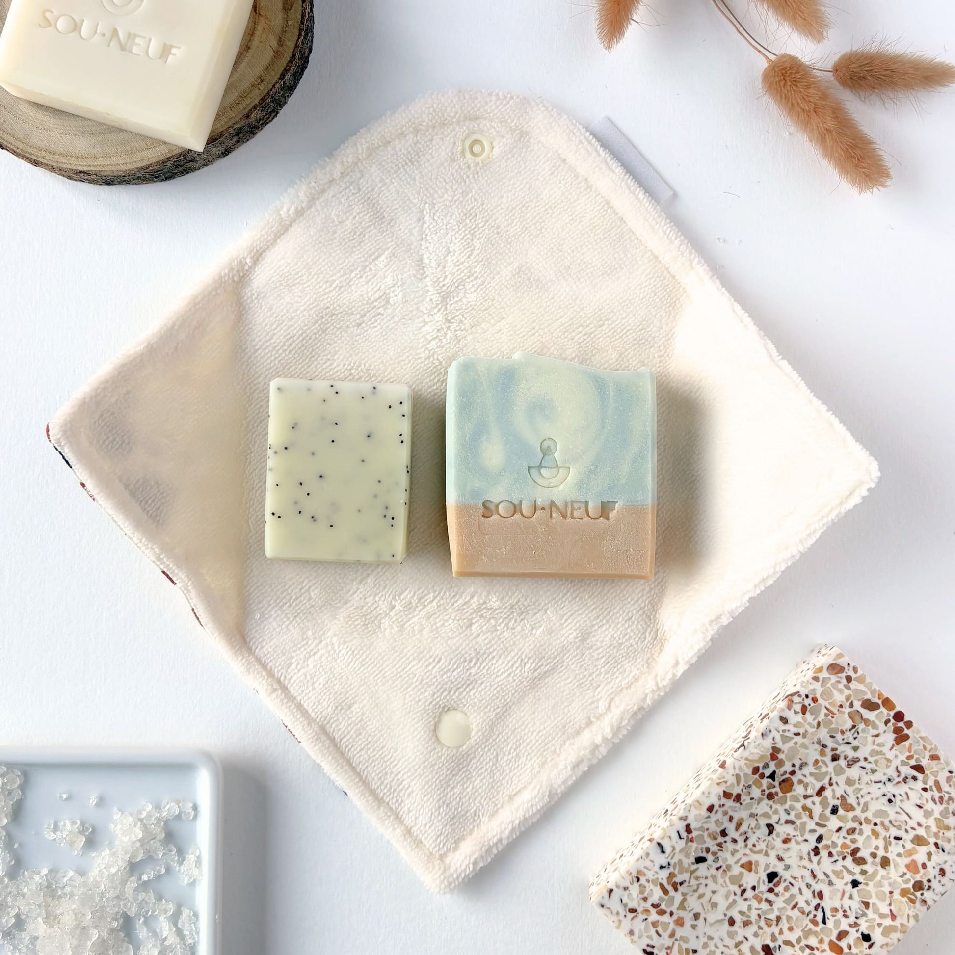 Chaque pochette est une pièce unique, confectionnée avec le plus grand soin et pensée pour prolonger la beauté et la durée de vie de vos savons artisanaux.